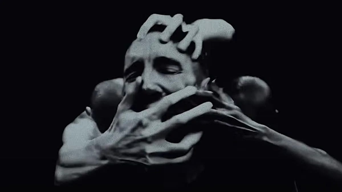 The video, directed by Maxime Quoilin, amplifies that sensation: black and red flickering like interference, images like worn-out tape, bodies writhing to break free from the static. It’s a “dirty” aesthetic that recalls the rawness of the Closer video — harsh lighting, crucifixes, cockroaches — and today feels like a breath of relief, far removed from the glossy polish of most mainstream clips.