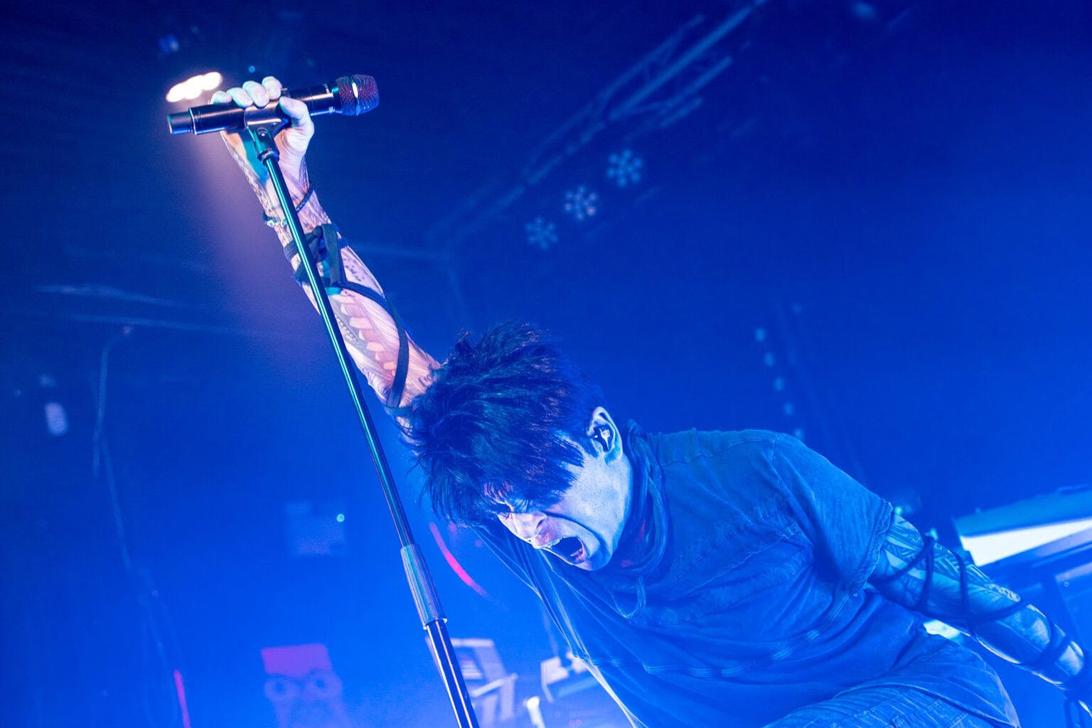 Nine o’clock sharp. Lights drop. A deep pulse shakes the room like a metallic heart. And there he is: Gary Numan, bent over the mic, hair spiked like a survivor of some radioactive apocalypse. He mutters he can’t see, that he feels sick, that it’s the first time without makeup. But the excuses dissolve in the roar of the crowd. The Chosen ignites, and the ritual begins.
